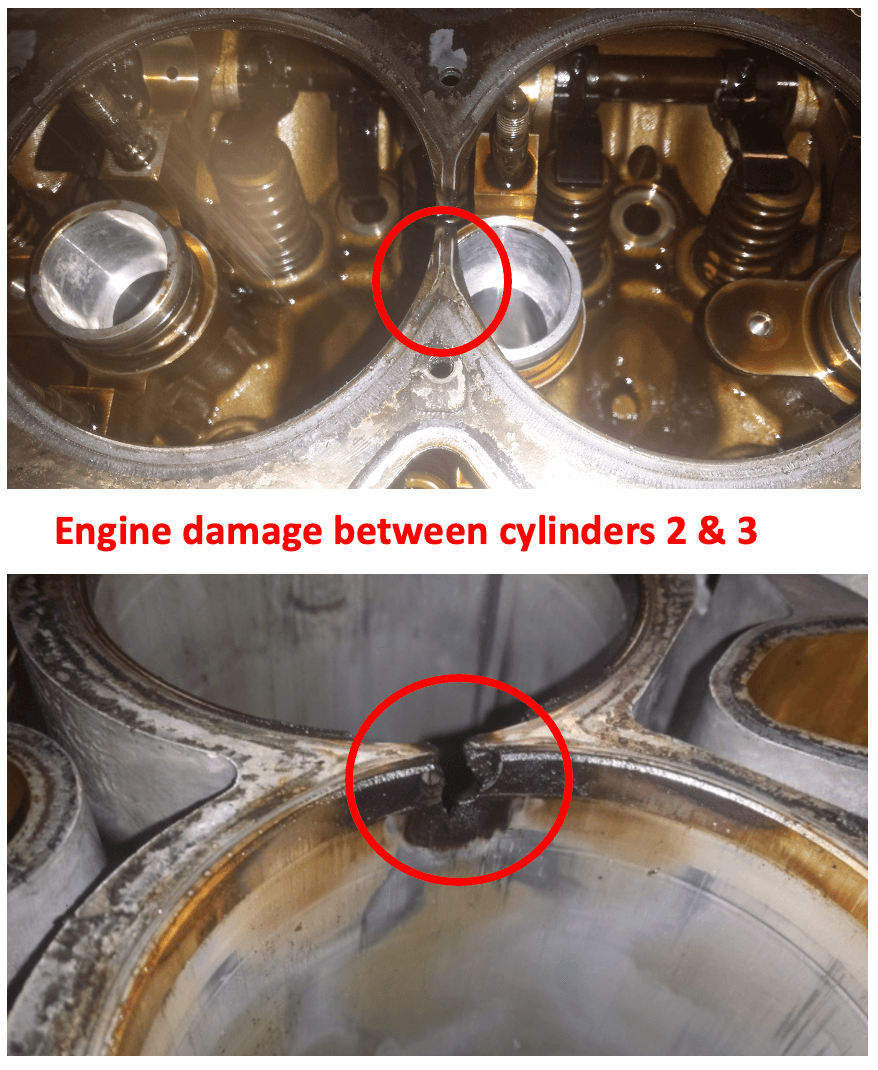 We had an independent inspection done on the vehicle which confirmed that there was damage to the vehicles cylinder head and block that could not be repaired. The bottom end of the engine had experienced oil starvation and also evidence of a previous overheating episode. The report also revealed that's a recent repair had been undertaken on this engine to a very poor standard. The engine block been damaged to such an extent that the extreme heat had corroded the liners between cylinders 2 & 3. The only way the only way to repair this correctly would be to replace the entire cylinder block but we discovered it had been merely patched up with a chemical metal compound, which had subsequently failed. This repair was never going to last, and we suspected the supplying dealer had in fact instructed for this substandard repair to be undertaken prior to selling the vehicle to Mr PH.